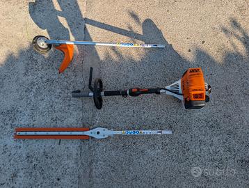 Sistema multifunzione professionale STIHL KM131R KombiSystem, completo di accessori originali: ✔️ Motore KM131 R (top di gamma, potente e affidabile) ✔️ Decespugliatore FS-KM ✔️ Tagliasiepi 💯 CONDIZIONI PARI AL NUOVO •Utilizzato UNA sola stagione e pochissime volte (circa 5–6 ore totali) •Tagliasiepi usato 1 sola volta •Decespugliatore usato 2 volte •Utilizzata miscela originale STIHL •Pulito dopo ogni utilizzo •Conservato al coperto •Nessun difetto 🔧 MACCHINA PROFESSIONALE, KM 131R: •potenza elevata •affidabilità nel tempo •utilizzo continuo anche intensivo •36,3 cc – 1,4 kW •Motore 4-MIX (molta coppia) •Uso: professionale / lavori pesanti continui 🌿 ENORME VANTAGGIO: SISTEMA MODULARE Questo motore può essere equipaggiato con numerosissimi accessori STIHL Kombi (acquistabili separatamente), tra cui: ✔️ Decespugliatore FS-KM (già incluso) ✔️ Tagliasiepi HL-KM (già incluso, lama orientabile) ✔️ Potatore HT-KM (per taglio rami in altezza) ✔️ Soffiatore BG-KM (pulizia foglie) ✔️ Fresa BF-KM (lavorazione terreno) ✔️ Arieggiatore/rigeneratore prato ✔️ Spazzola rotante KB-KM (pulizia superfici) ✔️ Rullo spazzante KW-KM ✔️ Bordatore FBD-KM 👉 Un unico motore per fare praticamente TUTTO nel giardinaggio professionale (STIHL Italia) 💪 Ideale per: •giardinieri •manutenzione verde •privati esigenti •chi cerca qualità superiore (alternativa a Husqvarna, Echo, Efco, Oleomac) Multifunzione da manutenzione giardinaggio che puo funzionare come decespugliatore professionale, tagliasiepi, potatore telescopico, rasaerba, motosega, soffiatore foglie. Ottimo alleato per il giardino e per gli spazi verdi, un attrezzo professionale di alta qualità. Il KM131R è il più potente della serie rispetto ai suoi “fratelli minori” KM 111 R, KM 94 e KM 56 RC E o KMA 135 R, ottima alternativa a 535LK o PAS 2620es 🎯 POSSIBILITÀ DI PROVA: macchina impeccabile! 📍 SOLO RITIRO A MANO 👉 Disponibile in altro annuncio anche: •Decespugliatore STIHL FS 120 R pari al nuovo