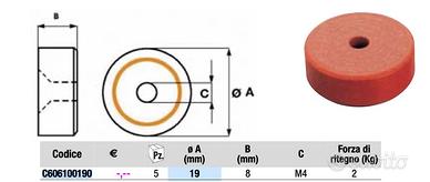 MISURA DIAMETRO ESTERNO 19mm ALTEZZA 8 mm FORO FILETTATO M.4. FORZA DI RITEGNO 2kg.