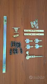 Vendo ampio lotto misto di ferramenta per infissi e mobili, ideale per il fissaggio e la sicurezza di porte, finestre e sportelli. Il materiale è in ottime condizioni, robusto e pronto all'uso. Il lotto comprende oltre 30 pezzi: Catenacci a scorrimento (Vari modelli): 2 Grandi in ottone lucido con terminale a pomello. 4 Medi con finitura zincata azzurra. 4 Medi con finitura nichelata/acciaio. 1 Catenaccio grande rinforzato con asola per lucchetto (finitura tropicalizzata). 4 Catenacci a incasso per profili in legno. Sistemi di chiusura e fermi: Set di fermi a "scatto" in ottone per ante di mobili e scrivanie (inclusi modelli a pressione di precisione). Coppia di aste a leva (cremonesi esterne) per la chiusura sicura di finestre o persiane. Serie di chiusure a rullo e a pressione per mobili da cucina o armadi. Accessori vari: Ganci fermaporta, componenti per serrature e minuteria di fissaggio coordinata. Dettagli: Materiali: Ottone, Acciaio zincato, Acciaio tropicalizzato. Stato: Nuovo da fondo di magazzino o pari al nuovo. Utilizzo: Perfetto per chi deve mettere in sicurezza scuri, persiane, portoncini o restaurare la chiusura di vecchi armadi. Prezzo per l'intero lotto: 75 €