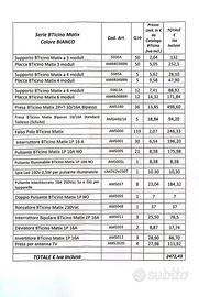 Vendo stock materiale elettrico BTicino serie Matix Bianco, usato per breve periodo e rimosso per passaggio ad altra serie.