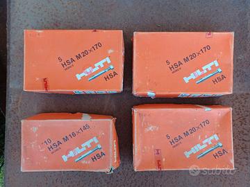 Stock di tasselli Hilti nuovi - perni ancoraggio 5 tasselli HSA M20x170 7 tasselli HSA M16x145 1 scatola di HSA M6x65 circa 9kg totali