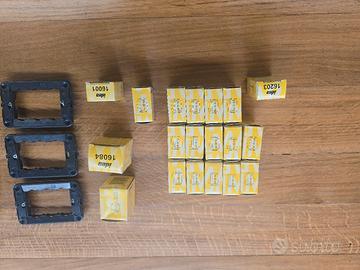 vendo per esubero tutto in blocco vero affare e tra poco introvabili i seguenti pezzi: 16 bipresa Vimar Idea Nero 16203 2 pulsante a tirante campanelli Vimar 16084 1 interruttore vimar 16001 nero 3 supporti a tre posti Vimar Idea 1 placca nera in plastica 5 posti vimar Idea nero tutto nuovo e mai usato, imballato