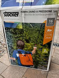 Pompa zaino manuale a pompa Stocker, nuova, mai usata.