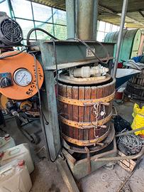 Strettoia Torchio da uva, idraulico con due carrelli e cestelli in legno. Funzionante . Guarnizioni olio da rivedere. Un po’ polveroso ma funzionante. Per cessazione attività