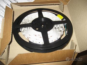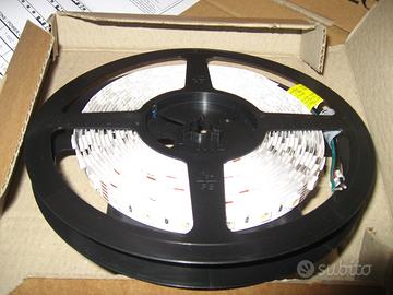 Striscia LED da 60 chip 5050 al metro, fornita in un rotolo da 5m con un totale di 300 LED, con protezione IP20. Ha una potenza di 19.2W al metro ed una potenza complessiva per 5 metri di 96W. Dotata di un angolo di illuminazione di 120° e costruita con componenti di qualità che assicurano una luminosità costante per almeno 50.000 ore.