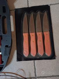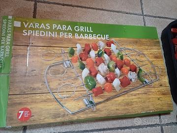 Strumenti per barbecue: sei spiedini mai usati, quattro coltelli nuovi sempre imballati e altri accessori praticamente mai usati (vedi foto) riposti in apposita valigetta.