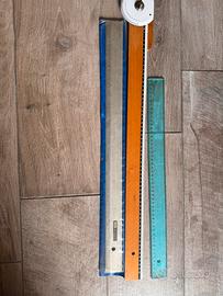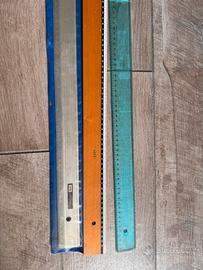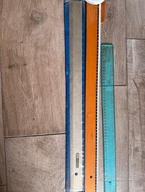 Tre righe per disegno tecnico Una in plastica Una in legno con gognometro Una in metallo