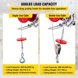 Strumento di Sollevamento Elettrico, 220 V 850 W PA400 Ascensore Paranco Elettrico in Ghisa e Alluminio per Sollevare Oggetti di Forma Regolare o Irregolare Come Pietre, Alberi, Falciatrici · Capacità di Carico di 880 Libbre: il paranco elettrico solleva facilmente piccoli motori, trasmissioni o materiali da costruzione. Supporta due modalità di sollevamento con un gancio di sicurezza in acciaio. La capacità e la velocità di una singola linea sono 440 libbre/200 kg, 33 piedi/min (10 m/min). La capacità e la velocità della doppia linea sono 880 libbre/400 kg, 17 piedi/min (5 m/min).