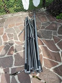 Vendo parti di struttura gazebo 3x3 in ferro causa rottura tubi ovali di supporto dovuta al vento. La struttura è a posto ma mancante di n11 tubi ovali ferro (tipo mobilio) di supporto su 25 totali.