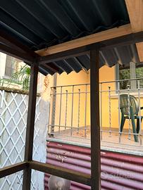 Vendo robusta struttura in ferro verniciato, completa di copertura in pannelli ondulati bituminosi fissati su travetti in legno.