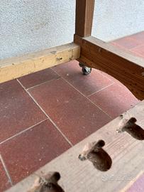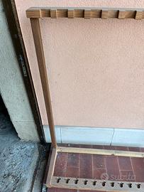 Struttura in legno fatta a mano (pezzo unico) per sostenere archi da tiri a segno. Con ruote per spostarlo dove si desidera Dimensioni: 94x34x132h cm NO PERDI TEMPO