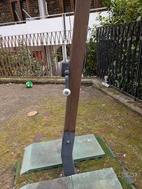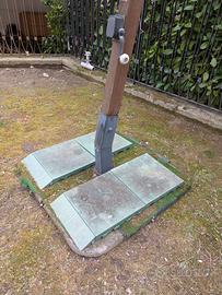 Struttura robusta per ombrellone da giardino con apertura manuale a manovella. Realizzata in legno e metallo, molto stabile con base in cemento inclusa. ⚠️ Venduta senza telo