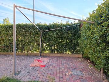 struttura in metallo a pali circolari per gazebo a vela . area coperta circa 3,40 m x 3,2 m. ritiro e trasporto a carico del cliente. teli non compresi.