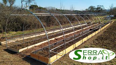 Struttura tunnel universale con arcate in acciaio modulabili di varie larghezze e altezze.