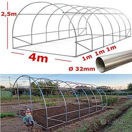 Struttura tunnel universale con arcate in acciaio modulabili di varie larghezze e altezze.