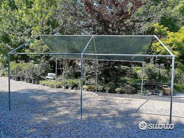 Vendo struttura tubolare nuova, diametro tubi 33 mm, spessore 1,5 mm, tubi da 6 m , si possono tagliare o raccordare Struttura facile da assemblare con viti in dotazione. Struttura adatte per fare serre, rimesse attrezzi, garage, ricovero, copertura con antigrandine, ombreggiante, telo, box auto, voliere, gabbioni. Esempio prezzo struttura: 6 m x 3,7 m x h 2 m ai lati, 3,1 m al colmo Prezzo: euro 250,00 Telo copertura escluso Esempio struttura: 4m x 2,8m X1,5 m altezza ai lati e 2,26 m