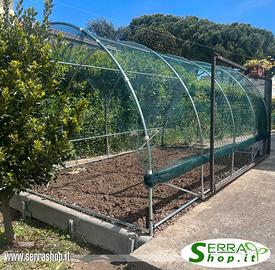 Il nostro tunnel NET PLUS ormai ha conquistato tutti per la sua qualità , funzionalità e versatilità davvero uniche. Una soluzione o efficace per riparare il tuo orto dalla grandine . Struttura in acciaio robusta con larghezza 3m o 4m modulabile e rete di altissima qualità TENAX. Possiamo fornire anche: - FILM professionale Made in Italy 150MC o 200MC Long LIFE - Rete antigrandine TENAX - Rete anti-insetto TENAX - Telo ombreggiante di prima qualità - Tanti ACCESSORI STRUTTURA Robusta e stabile struttura in tubolari che vanno a formare un tunnel. Spessore maggiorato acciaio rispettivamente 0,9mm / 1,1mm ( no 0,5/0,6mm come le altre in commercio ) VERSIONE CON LARGHEZZA 3m - Passo Arcata 1m - Tubolare 25mm - Altezza 2m Misure : 3x2m , 3x3m , 3x4m , 3x5m , 3x6m , ...... modulabile a volontà VERSIONE CON LARGHEZZA 4m - Passo Arcata 1m - Tubolare 32mm - Altezza 2,5m Misure : 4x3m , 4x4m , 4x5m , 4x6m , 4x7m , ...... modulabile a volontà TELO RETE OMBREGGIANTE Materiale di assoluta prima qualità marca TENAX , resistente e durevole nel tempo. RICAMBI SEMPRE DISPONIBILI Siamo gli unici a garantire parti di ricambio sempre disponibili. SPEDIZIONE Spediamo in tutta Italia. CHI SIAMO Serrashop_it è il primo store in Italia per la fornitura di serre in FILM o policarbonato per professionali e per privati . Centinaia di articoli per il tuo orto , giardino o per il vivaio aziendale.