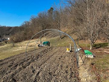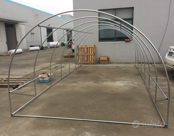 Struttura tunnel universale con arcate in acciaio modulabili di varie larghezze e altezze.