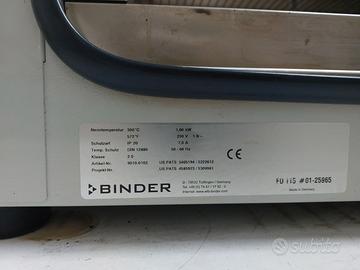 Stufa di essiccazione Binder in buone condizioni, dotata di due ripiani in acciaio. Volume interno. 115l Range temperatura: fino a 300°C Sensibilità: ± 1°C Dimensioni esterne: 71 cm x 61 cm x H 74 cm