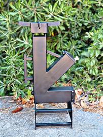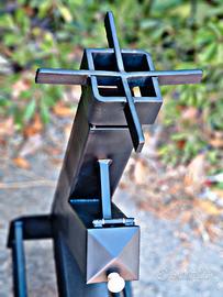 Splendida stufa Rocket o comunemente chiamata stufa a razzo artigianale, realizzata interamente a mano in acciaio al carbonio verniciato con una vernice professionale per alte temperature (resistente fino a 800°) e maniglie in legno.