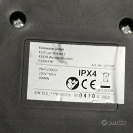 2 stufe simili potenza max 2000 watt . supporto altezza fino 2 m.impostazione calore da 650.1300 e 2000 watt