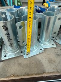 Supporti zincati per pali / portapali – nuovi – lotto 10 pezzi e 4 collari nuovi mai utilizzati Ideali per: •recinzioni •strutture metalliche •supporto pali verticali •lavori edili o fai-da-te Caratteristiche: •materiale: acciaio zincato (resistente alla ruggine) •base con fori per fissaggio a terra •predisposizione per fissaggio palo con bulloni •condizioni: nuovi Vendita in blocco. Disponibile per ritiro a mano o spedizione.