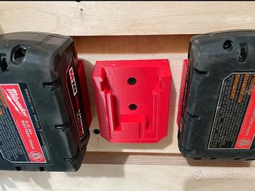 Il supporto per utensili funzionerà con la maggior parte dei tipi di utensili, pensato per essere montato sotto ma può essere montato lateralmente se si adatta a un determinato utensile. I supporti per batterie funzioneranno con qualsiasi batteria M18 e possono essere montati in qualsiasi orientamento poiché utilizzano il meccanismo di blocco delle batterie per tenerla in posizione. Utilizzare 2 viti n. 8 per fissarli a qualsiasi cosa si desideri.