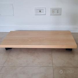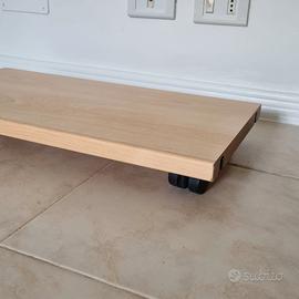 Pratico tavolino mobile su ruote con finitura effetto legno rovere chiaro, dotato di 4 ruote pivottanti per massima mobilità e versatilità d'uso.