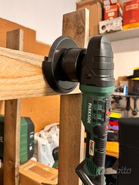Stampato in 3D con PLA+, ottime rifiniture e ottima rigidità per sostenere la lucidatrice anche con la batteria da 4ah inserita.