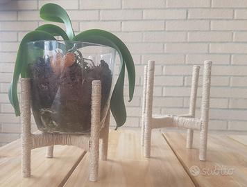 Alzatine per vasi da terra, tavolo, mensola ecc.. Legno e spago, varie misure. Fatto a mano