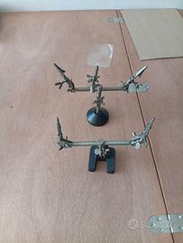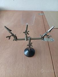 Questo strumento è comunemente chiamato "terza mano". Si tratta di un supporto articolato utilizzato per tenere fermi piccoli componenti durante lavori di precisione. È composto da una base pesante e da bracci regolabili dotati di morsetti a coccodrillo. Spesso include anche una lente d'ingrandimento per facilitare la visione dei dettagli. Viene impiegato principalmente in ambiti quali: Saldatura elettronica: per sorreggere circuiti stampati o fili. Modellismo: per assemblare e dipingere piccole parti. Gioielleria: per riparazioni e lavori di microsaldatura.