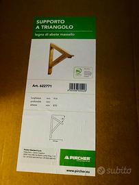 Quantità numero 2 -Supporti a triangolo per tettoia esterna legno abete massello. L 91,4 H 8.7