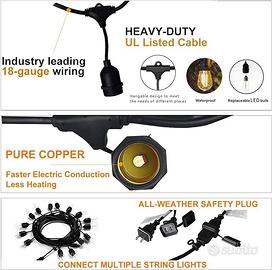 【Durevole Commerciale Catena Luci】Certificato CE e il cavo flessibile gommato è più spesso di una corda tradizionale. Lasciare in modo sicuro queste luci in mostra tutto l'anno. Costruzione resistente resistente agli agenti atmosferici IP65, facilità di installazione, in grado di resistere a temperature estreme, climi piovosi, ventosi o umidi.