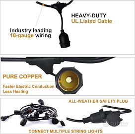 💫【Risparmio Energetico Catena Luminosa】Svater lampadine esterno giardino risparmiano oltre il 90% di energia rispetto alle lampadine a incandescenza, una lunga durata delle ultime 30.000 ore può ridurre i costi di manutenzione per il cambio frequente delle lampadine.