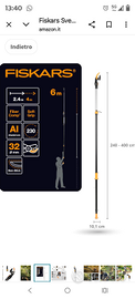 Svettatoio marca fiskars professionale, asta con manico estensibile completamente in alluminio, testina regolabile con catena e lama d'acciaio intercambiabile, per potatura rami alti direttamente da terra, ottime condizioni vendo per inutilizzo.