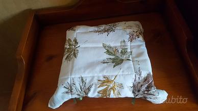 Svuotatasche in stoffa dipinto di foglie e imbottito Nuovo Adatto a qualsiasi uso Tipo la festa della mamma magari riempito di cioccolatini Misure 22x23 colore beige chiaro con foglie Bordino tutto intorno e nastrini ai quattro lati removibili per lavaggio