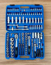 Questo set di attrezzi da 171 pezzi include una vasta gamma di utensili a vite. Ideale per lavori di avvitamento professionale su veicoli e macchinari, in casa o per hobby e fai da te. Il set viene fornito in una robusta valigetta di plastica con sistema di organizzazione.