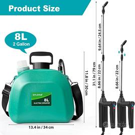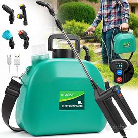 SYLSTAR Pompa Irroratrice a Batteria 8L, 3 Velocità Spruzzatore a Pressione con Indicatore di Batteria, 7.4V Atomizzatore Potente, 4 Ugelli Regolabili Nebulizzatore Piante per Giardino Cortile Prato