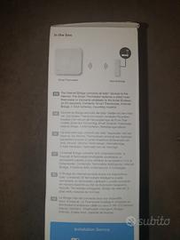 mai installato composto da termostato smart (a batteria) + internet bridge il termostato non richiede alimentazione a batteria . ha contatto puro per abilitazione caldaia vendo per errato acquisto ( avevo bisogno di un termostato con alimentazione di rete)