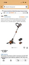 Tagliabordi a batteria completo di batteria e ricarica batteria e filo ritorto