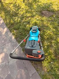 Vendo come da foto Gardena Rasaerba elettrico powermax 1100/32 perfettamente funzionante usato pochissimo poiché ho preso a batteria •Potenza motore di 1100 W, velocità di rotazione 3400 giri/min. •Larghezza di taglio 32 cm. •Altezza di taglio regolabile su 3 livelli, da 20 m a 60 mm. •Adatto per superfici fino a 300 m2. •Cesto di raccolta da 30 litri. •Dimensioni: 120x91,6x37,1 cm. •Peso: 8,5 kg.