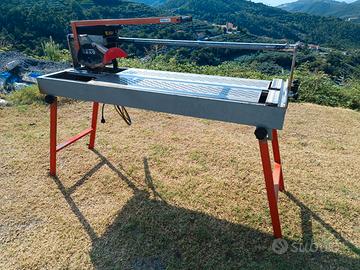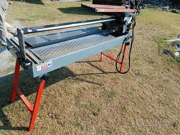 Taglierina elettrica Montolit con ampissima lunghezza di taglio piastrelle fino a 1200mm, motore monofase 220V, impianto acqua per taglio ad umido, macchina pronta all’uso completa di disco diamantato.