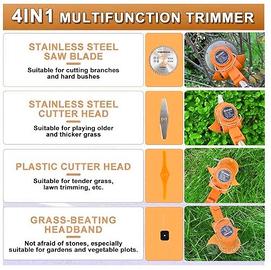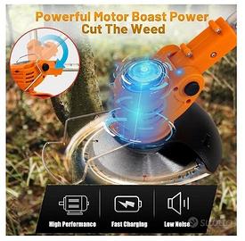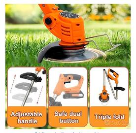 Tagliabordi a batteria, 4 tipi di accessori per la potatura, 2 batterie da 21 V, Pieghevole, Adatto a giardini e prati 【Efficiente tagliaerba a batteria】Efficiente tagliaerba a batteria con potente motore brushless in rame puro con una velocità massima di 11.000 giri/min. Taglia facilmente le erbacce e i rami indesiderati nel giardino. Dotato di due batterie ricaricabili agli ioni di litio con caricabatteria rapido, il lavoro di diserbo nel prato del giardino può essere svolto in modo semplice ed efficiente. 【Impugnatura comoda e sicura】Questo tagliabordi a batteria OUTIGO è dotato di un'impugnatura ergonomica che lo rende molto comodo da usare. Per attivarlo, premere contemporaneamente il pulsante di sicurezza e l'interruttore, in modo da lavorare in modo più efficiente. Una protezione anti-spruzzi protegge il decespugliatore da tagli e schizzi accidentali, così puoi usarlo in tutta tranquillità. 【Corpo leggero e sottile】Il tagliabordi elettrico OUTIGO pesa solo 0,95 kg e può essere facilmente utilizzato da chiunque. La testina di taglio regolabile può essere ruotata di 90° verso l'alto, verso il basso, verso sinistra e verso destra. Ciò significa che anche i punti più difficili da raggiungere possono essere raggiunti senza problemi. Il tosaerba può essere ripiegato in tre parti. Non preoccuparti se occupa troppo spazio. 【Combinazione di 4 Tipi di Lame】Il tagliaerba a batteria è dotato di 4 tipi di lame ad alta efficienza: le lame in plastica e le corde da taglio sono adatte per tagliare erba giovane molto tenera; le lame ad angolo retto sono adatte per tagliare erbacce, piccoli arbusti e rami ; Lame per seghe circolari Adatte per potare arbusti e alberi più spessi. 【Elenco prodotti】1 tosaerba a batteria, 2 batterie, 1 caricabatterie, 2 lame diamantate in lega, 4 lame dritte, 10 lame in plastica, 4 corde per erba, cesoie manuali, un paio di guanti, occhiali di sicurezza, chiave inglese. no offerte no trattabile se c'è è disponibile è NUOVO