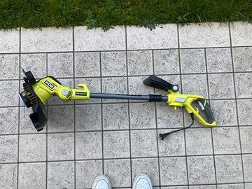 Usato solo 3 volte. Vendo per cambio residenza. Elettrico Ryobi 600 W adatto per la maggior parte dei lavori di rifinitura e bordatura nel giardino di casa. Funzione 2-in-1. l'utensile può essere utilizzato sia come tagliabordi (per rifinire l'erba intorno a ostacoli) sia come bordatore (con la testa ruotata per un taglio netto lungo i bordi del prato, come marciapiedi o aiuole). Testa: orientabile per passare tra la modalità tagliabordi e bordatore.