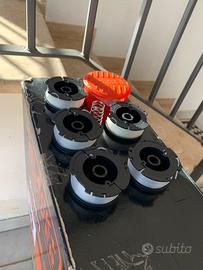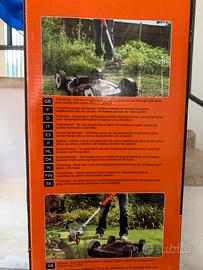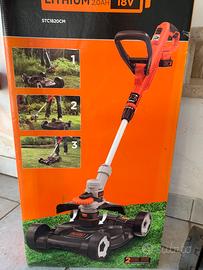Tagliaerba 3 in 1 con diametro 28cm (tagliaerba, taglia bordi con ruota di supporto e rasa erba con due altezze di taglio 40 e 60mm) manico allungabile, carrello agganciabile e due velocità, batteria ricaricabile da 18v 2.0 Ah e carica batteria, vendo con 5 bobine e un coperchio di ricambio nuovo