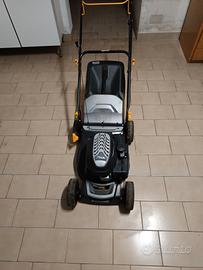 Tagliaerba funzionante, la cesta tende a staccarsi dalla plastica quando è piena d'erba.