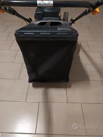 Tagliaerba funzionante, la cesta tende a staccarsi dalla plastica quando è piena d'erba.