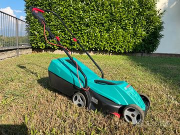 Tagliaerba/Tosaerba Bosch a filo Rotak 32 R (funzionante), motore da 1.200 W, larghezza di taglio: 32 cm, cesto raccoglierba da 31 l, per giardini di piccole dimensioni.