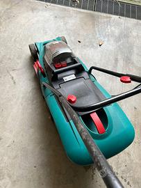 Tosaerba marca Bosch modello rotak 34 LI con batteria al litio con doppio caricatore uno nuovo . Usato in buone condizioni con libretto e doppio caricatore nuovo