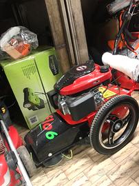 Capiente cesto di raccolta erba da 70 l.il sistema di trasmissione su ruote posteriori monta un motore ausiliario, cioè senza cinghie